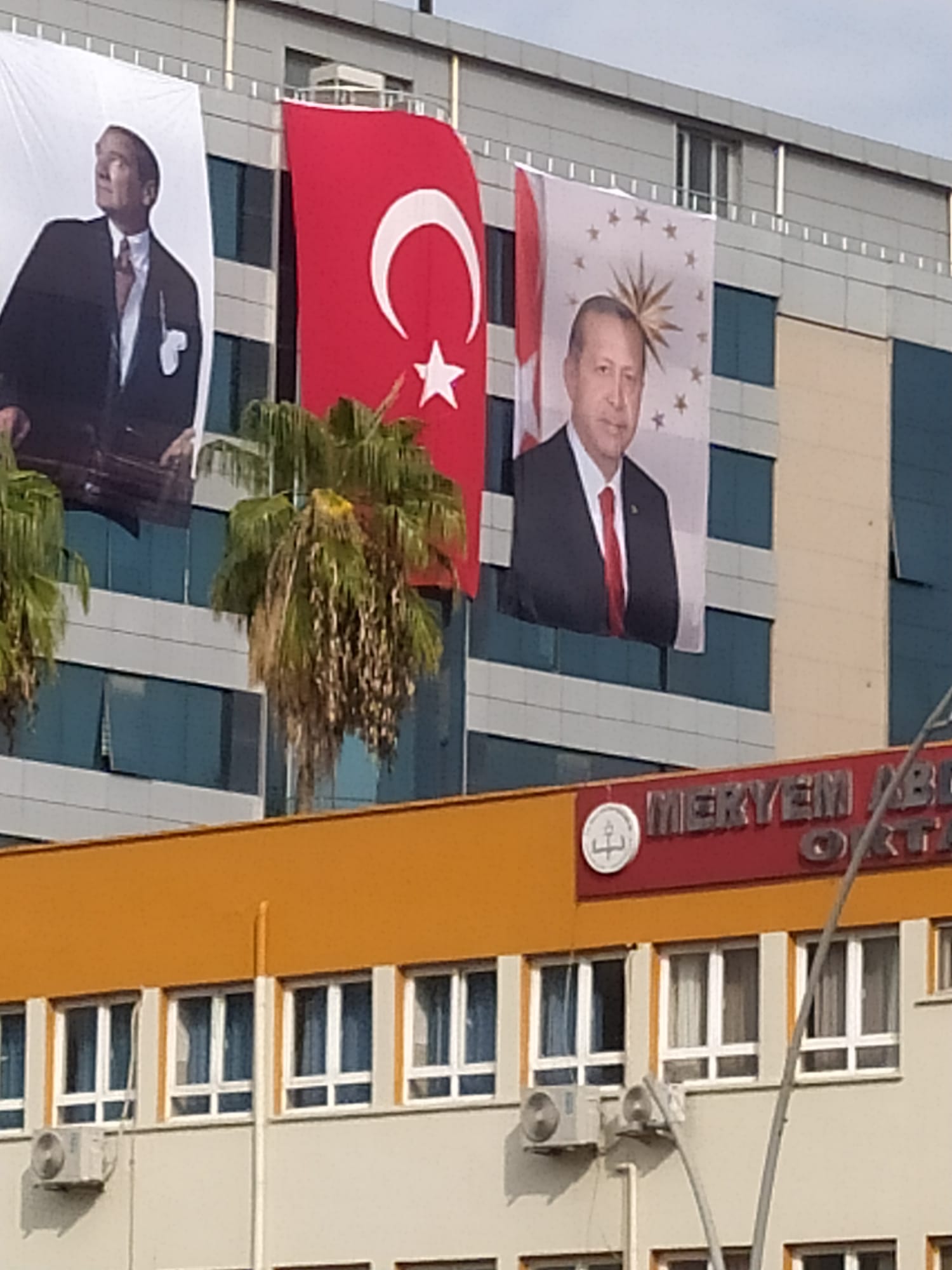 Dikkat çeken bu uygulamanın bunun nedeni ise öğrenilemedi. Ayrıca belediye binası dışında Adana Su ve Kanalizasyon İdaresi binasına da Atatürk ve Türk bayrağı ile beraber Erdoğan’ın da fotoğrafı asıldı.