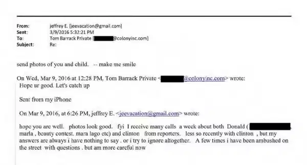 Huffington Post‘a göre, Epstein ile Barrack arasında, 9 Mart 2016’da geçen yazışmalarda şu ifadeler yer alıyor: