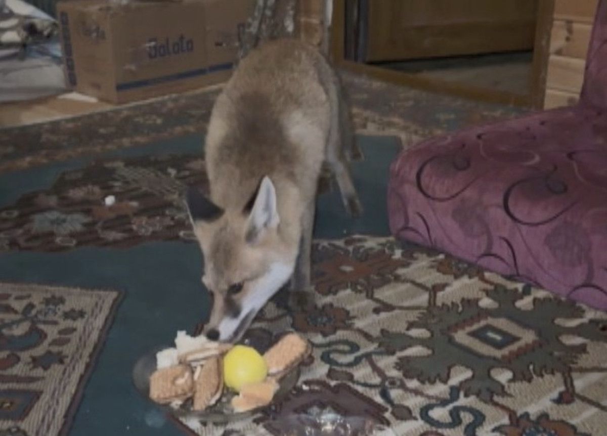 Tilki, bir süre sonra barakanın içine girip tabaktan ekmek, bisküvi ve meyve yedi.