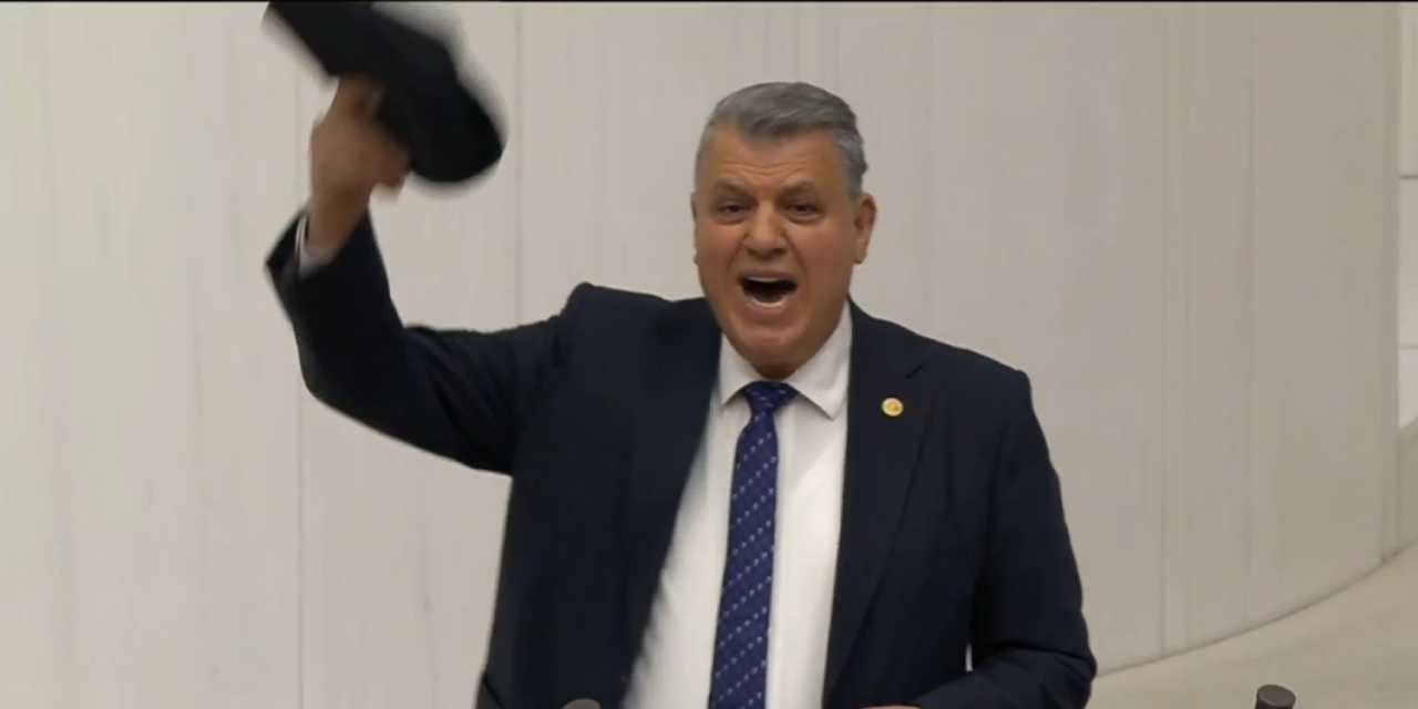 Kürsüye kafasında geldi: AKP’lilere baka baka yere attı
