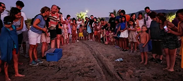 Kaplumbağaların denizle buluştuğu anları, sahildeki vatandaşlar da cep telefonlarıyla kayıt altına aldı.