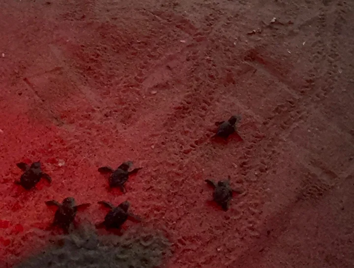 Yuvadan çıkan 48 yavru, daha sonra mavi sularla buluştu.