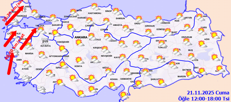 21 Kasım 2025 Cuma günü bölge bölge hava durumu: