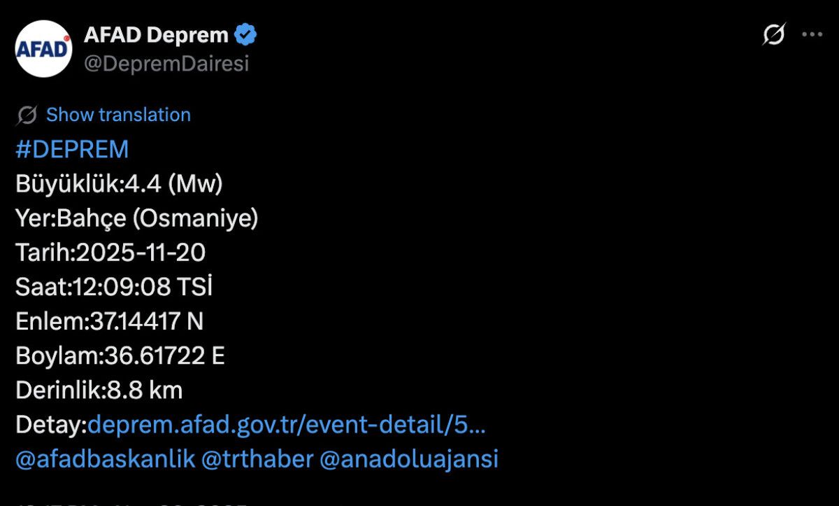 Afet sıklıkla Balıkesir’in Sındırgı ilçesinde yaşanırken bu kez Osmaniye’de bir sarsıntı kaydedildi.
