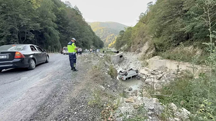 Kaza sebebiyle yolda trafik kontrollü olarak verilirken, çalışmaların ardından trafik normal seyrine döndü. Kazada dereye uçan aracın çıkartılması için ise çalışma başlatıldı.