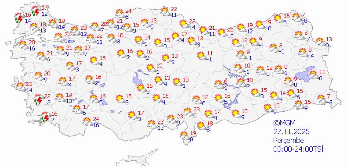 En yüksek sıcaklıklar 18-25 dereceye ulaşırken, İzmir’de 19-23 derece, Antalya’da 22-26 derece olması bekleniyor.
